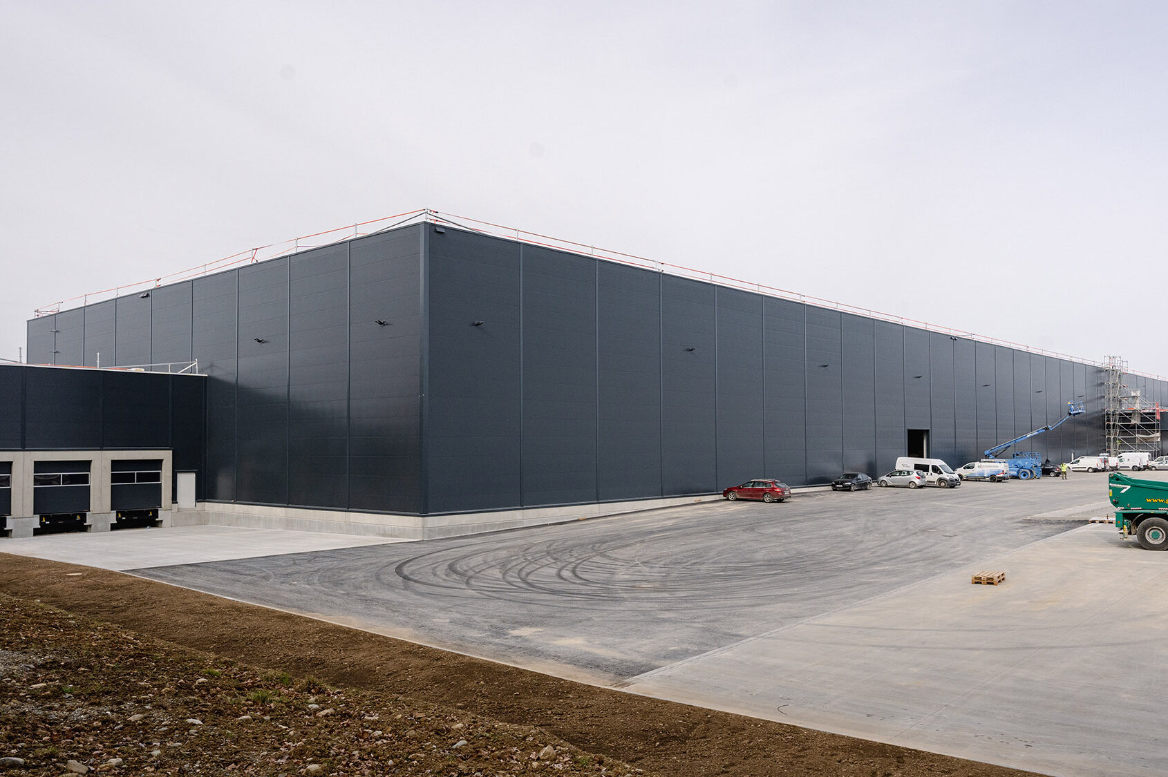 Für einen Großkunden wurden auf einem knapp 90.000 m2 großen Grundstück ein neues Logistikzentrum vorgesehen. Aufgeteilt auf 3 Baukörper entstanden insgesamt knapp 21.000 m² Hallenfläche für die Warenanlieferung, Verarbeitung bzw. Lagerung und Versand. Eine große Verladehalle sowie die Pforte komplettieren die Nutzungsbereiche.