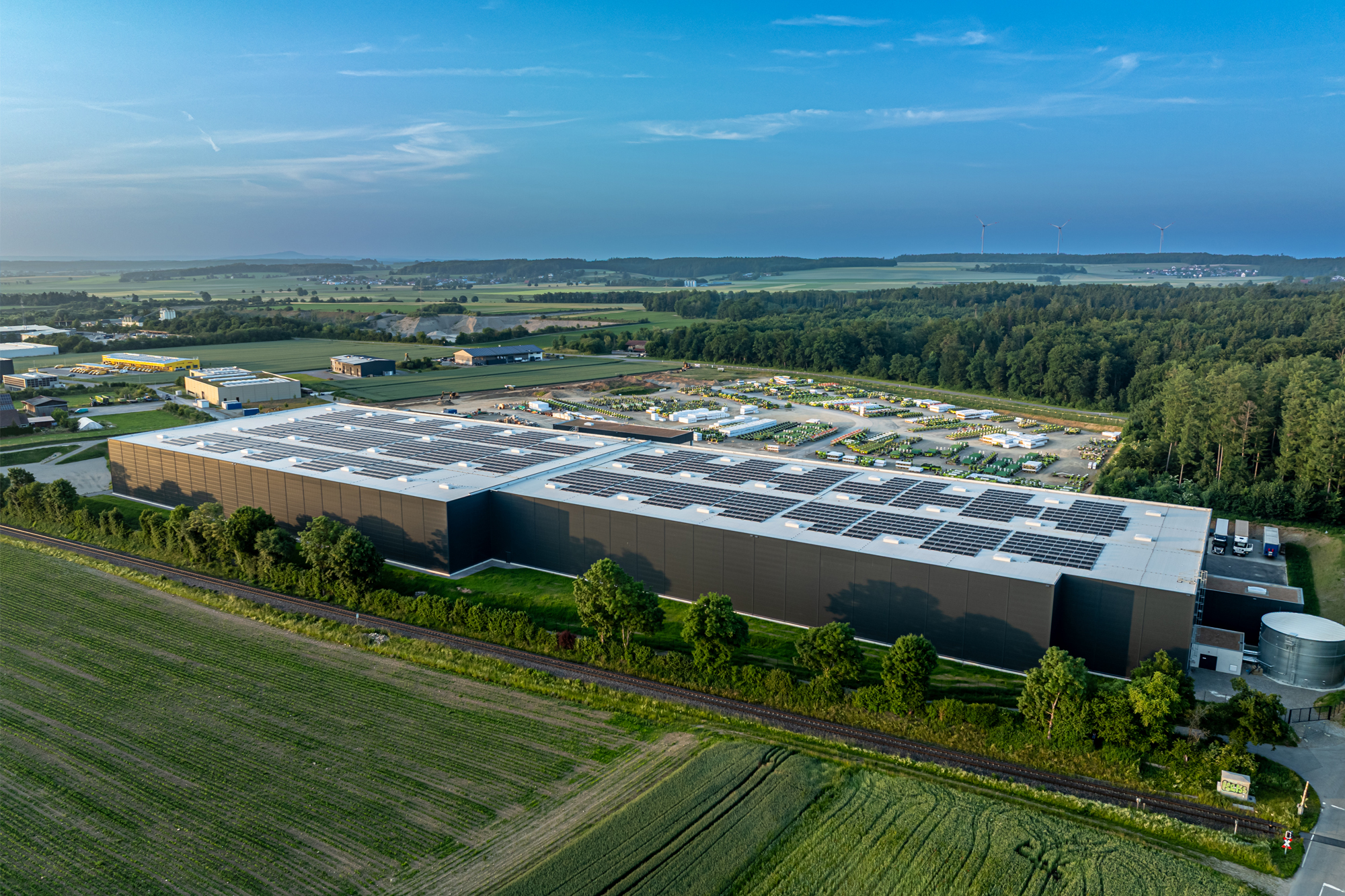 Auf dem Grundstück wurden neben einer neuen Straßeninfrastruktur mit Parkplatzanlage und Pforte für die LKW´s Außenlagerflächen vorgesehen. Die Außenlagerflächen wurden mit versickerungsfähigem Kies sowie Überdachungen bestückt mit PV-Modulen vorgesehen. Dadurch konnte die Versickerung wesentlich reduziert werden und zusätzlich nachhaltigen Strom für den laufenden Betrieb erzeugt werden.