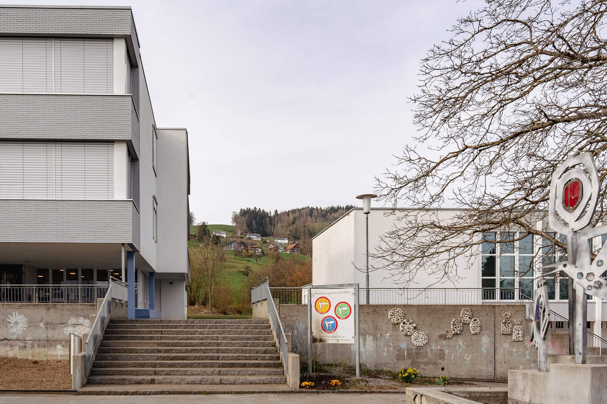 Alle oberirdischen Gebäudeteile sind in Massivholz sowie Holzständerbauweise konzipiert. Heimische Fichte aus den Wäldern der Ostschweiz wird als Konstruktionsholz eingesetzt. Flexible Grundrisse mit einem festen Stützenraster und veränderbare Trennwände können in Zukunft auf unterschiedliche Lernkonzepte reagieren. Sogar eine Erweiterung des Baus ist dadurch problemlos möglich. Durch diese Lösungen konnte ein nachhaltiges und zukunftsfähiges Konzept geschaffen werden.